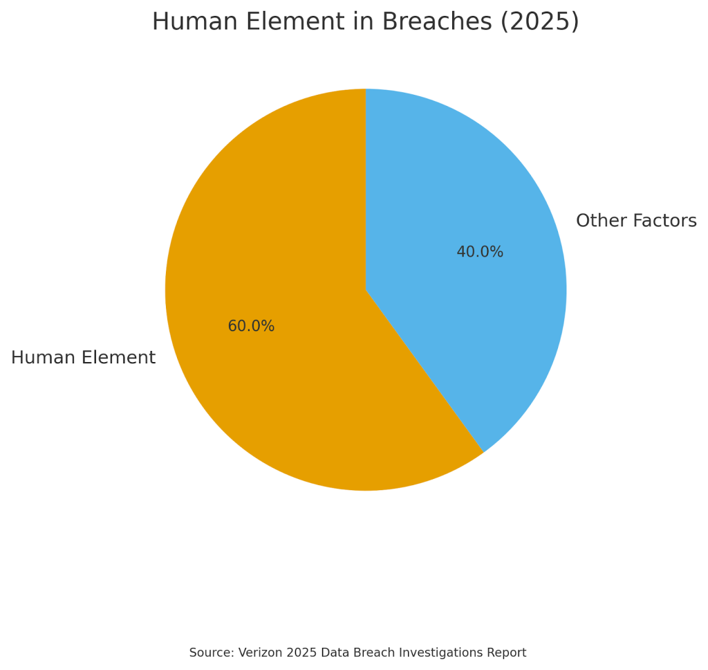 Despite technological advances, human factors continue to play a significant role in cybersecurity incidents. The human element was a component of 60% of breaches, according to Verizon’s 2025 Data Breach Investigations Report.4 This statistic highlights the importance of considering human behavior and potential insider threats in forensic readiness planning.