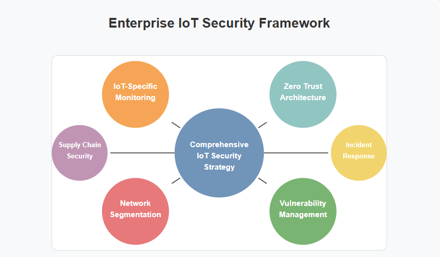 Enterprises should establish systematic processes for identifying, assessing, and remediating vulnerabilities across their IoT ecosystem. This includes regular scanning, prioritized patching, and compensating controls where updates aren’t feasible.