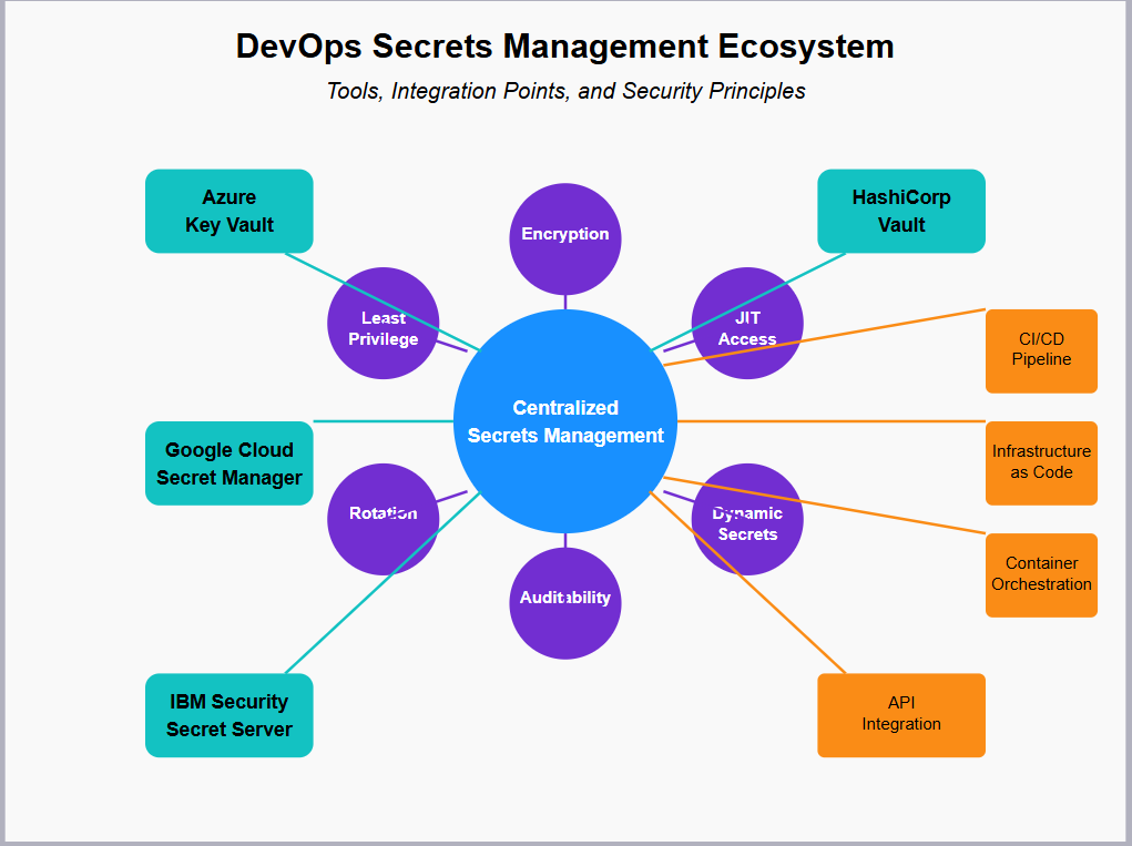 Effective secrets management in DevOps environments requires a comprehensive approach that balances security controls with operational efficiency. By implementing centralized management, encryption, least privilege, regular rotation, and robust audit capabilities, organizations can significantly reduce the risk of breaches while maintaining the velocity that makes DevOps valuable.
