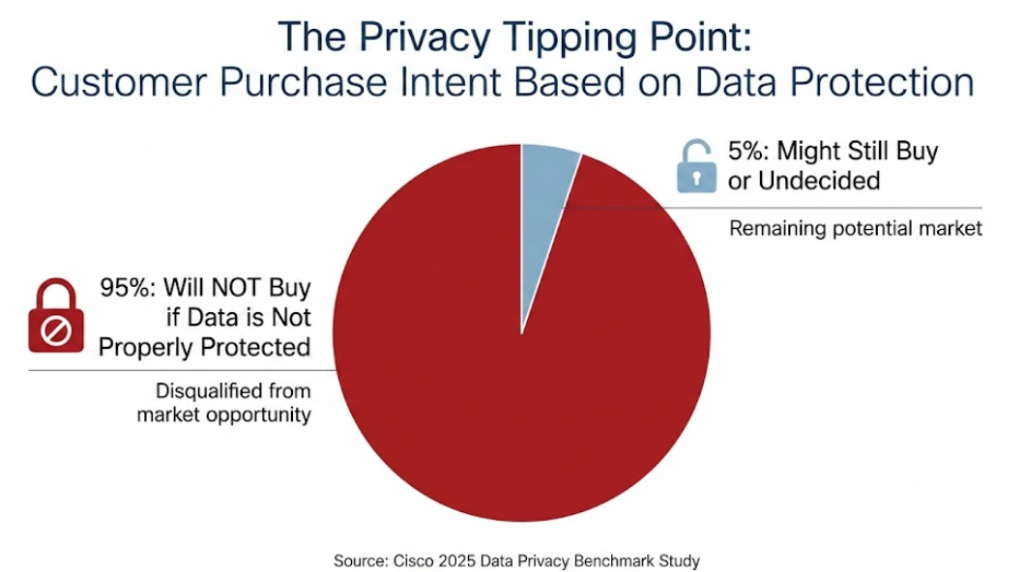 The Cisco 2025 Data Privacy Benchmark Study6 identifies a critical tipping point in commercial trust. It reveals that 95% of customers explicitly state they will not buy from an organization if their data is not properly protected. This data confirms that privacy mechanisms like pseudonymization are no longer just ‘security’ controls; they are a prerequisite for revenue. Failing to implement them effectively disqualifies a company from 95% of its potential market opportunities.
