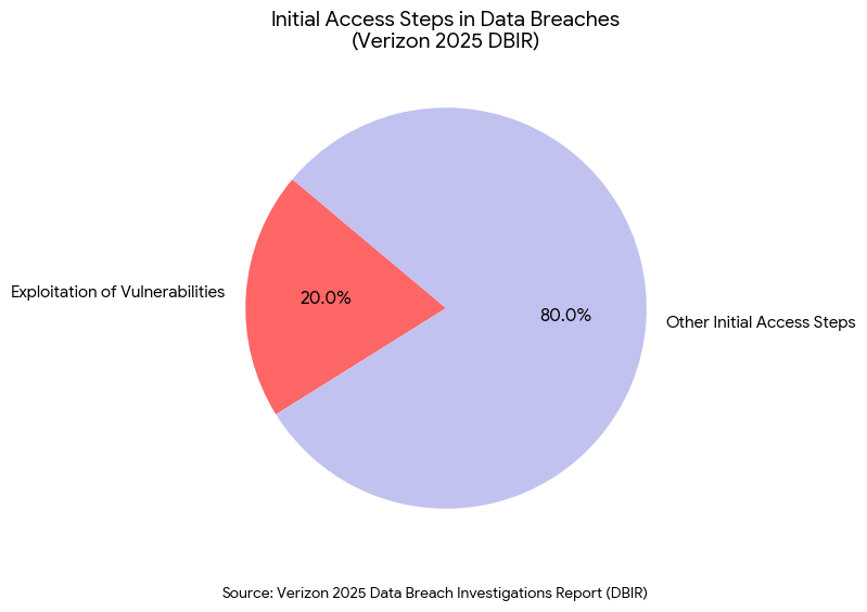 Verizon’s2025 Data Breach Investigations Report7 (DBIR) highlights that 20% of breaches now involve the exploitation of vulnerabilities as an initial access step, a 34% increase from the previous year. The attackers are moving faster than our internal ticketing systems.